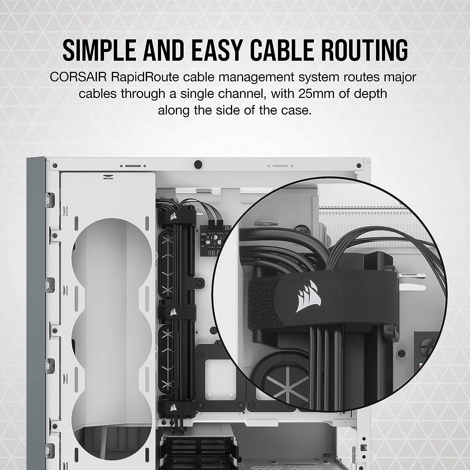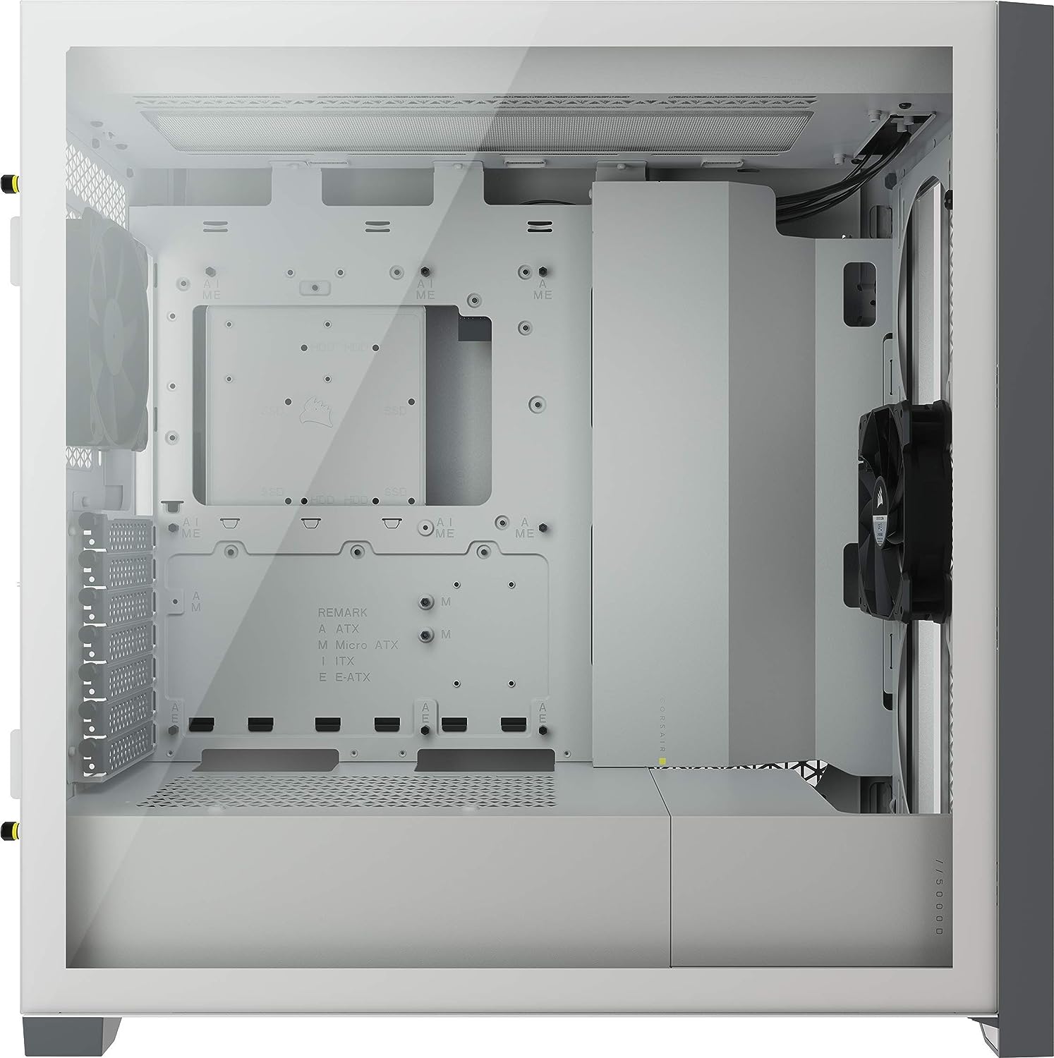 The CORSAIR 5000D AIRFLOW is a mid-tower ATX case with easy cable management for a clean build, with room for a 360mm push pull radiator, a high-airflow front panel, and two included CORSAIR AirGuide fans for concentrated airflow.