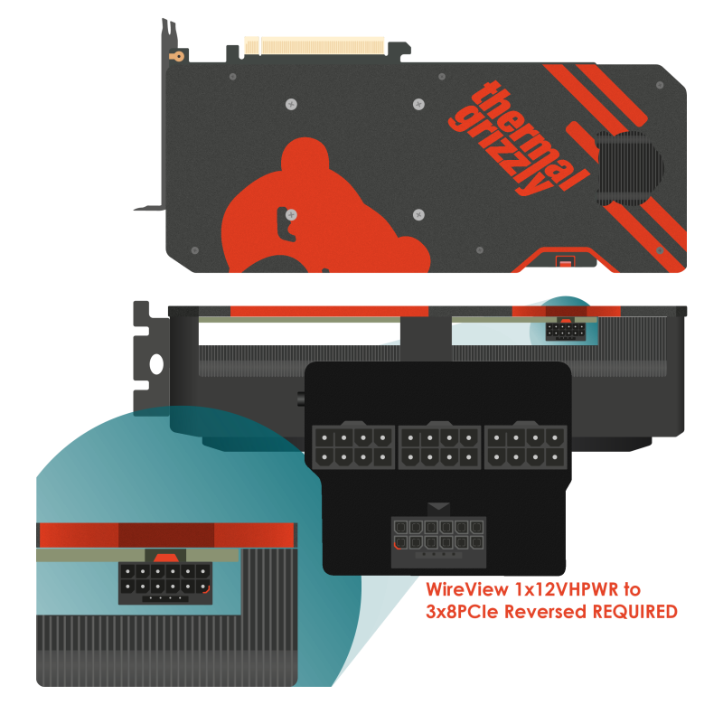 Thermal Grizzly WireView GPU 1x12VHPWR to 3x8Pin PCIe (Normal/Reversed)